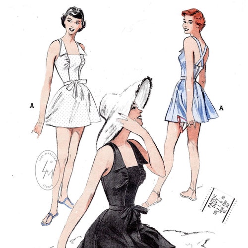 1950s Bombshell Bathing Suit Pattern Vintage Ruffle Skirt Etsy